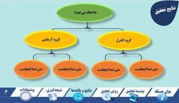 - طراحی اسلاید تخصصی برای تمامی بخش های مهم ارائه ی پاورپوینت پایان نامه و سمینار