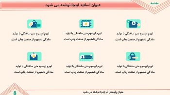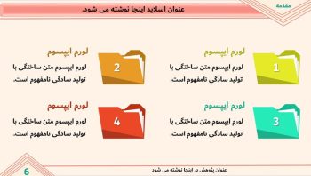 - طراحی اسلاید تخصصی برای تمامی بخش های مهم ارائه ی پاورپوینت پایان نامه و سمینار