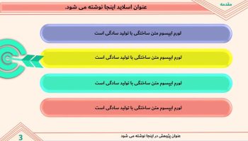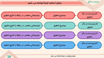 - اسلاید بندی تخصصی برای مقدمه، مروری بر بیشینه، روش تحقیق، نتایج، جمع بندی و پیشنهادات