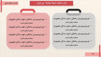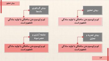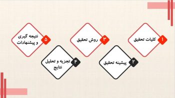 - اسلاید بندی تخصصی برای مقدمه، مروری بر بیشینه، روش تحقیق، نتایج، جمع بندی و پیشنهادات