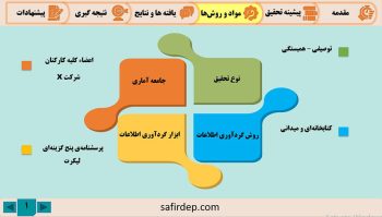 - اسلاید بندی تخصصی برای مقدمه، مروری بر بیشینه، روش تحقیق، نتایج، جمع بندی و پیشنهادات
