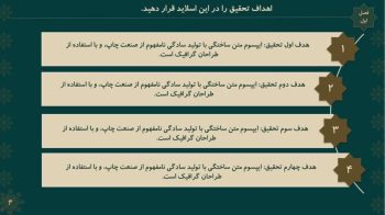 - طراحی اسلاید تخصصی برای تمامی بخش های مهم ارائه ی پاورپوینت پایان نامه و سمینار