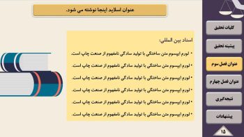 این قالب پاورپوینت مناسب افرادی است که می خواهند از پایان نامه یا سمینار مقاطع کاردانی، کارشناسی، ارشد و دکتری ( رشته حقوق و گرایشهای مرتبط) دفاع کنند.