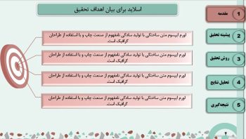 - طراحی اسلاید تخصصی برای تمامی بخش های مهم ارائه ی پایان نامه