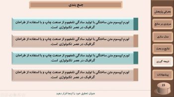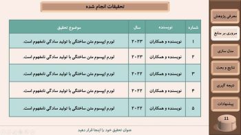 - اسلاید بندی تخصصی برای مقدمه، مروری بر بیشینه، روش تحقیق، نتایج، جمع بندی