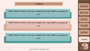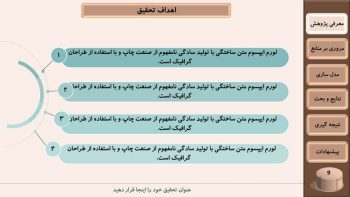 - طراحی اسلاید تخصصی برای تمامی بخش های مهم ارائه ی پاورپوینت پایان نامه و سمینار