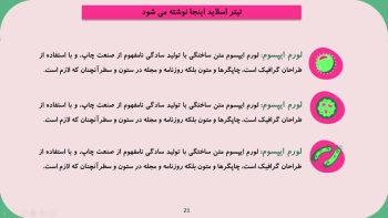 - دارای 22 اسلاید منحصربفرد و قابلیت تنظیم بکگراند منحصر (رنگ تم کلی پاورپوینت قابل تغییر است )