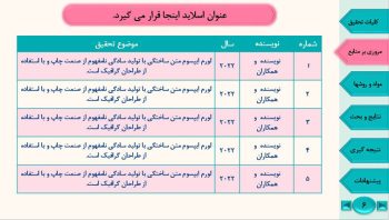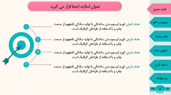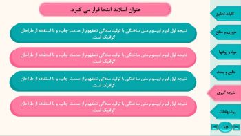 - طراحی اسلاید تخصصی برای تمامی بخش های مهم ارائه ی پایان نامه