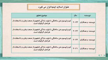 - طراحی اسلاید تخصصی برای تمامی بخش های مهم ارائه