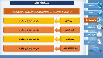 - طراحی اسلاید تخصصی برای تمامی بخش های مهم ارائه ی مقاله