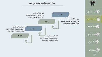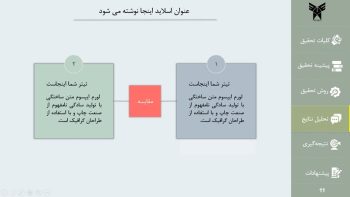 - طراحی اسلاید تخصصی برای تمامی بخش های مهم ارائه ی پاورپوینت پایان نامه و سمینار